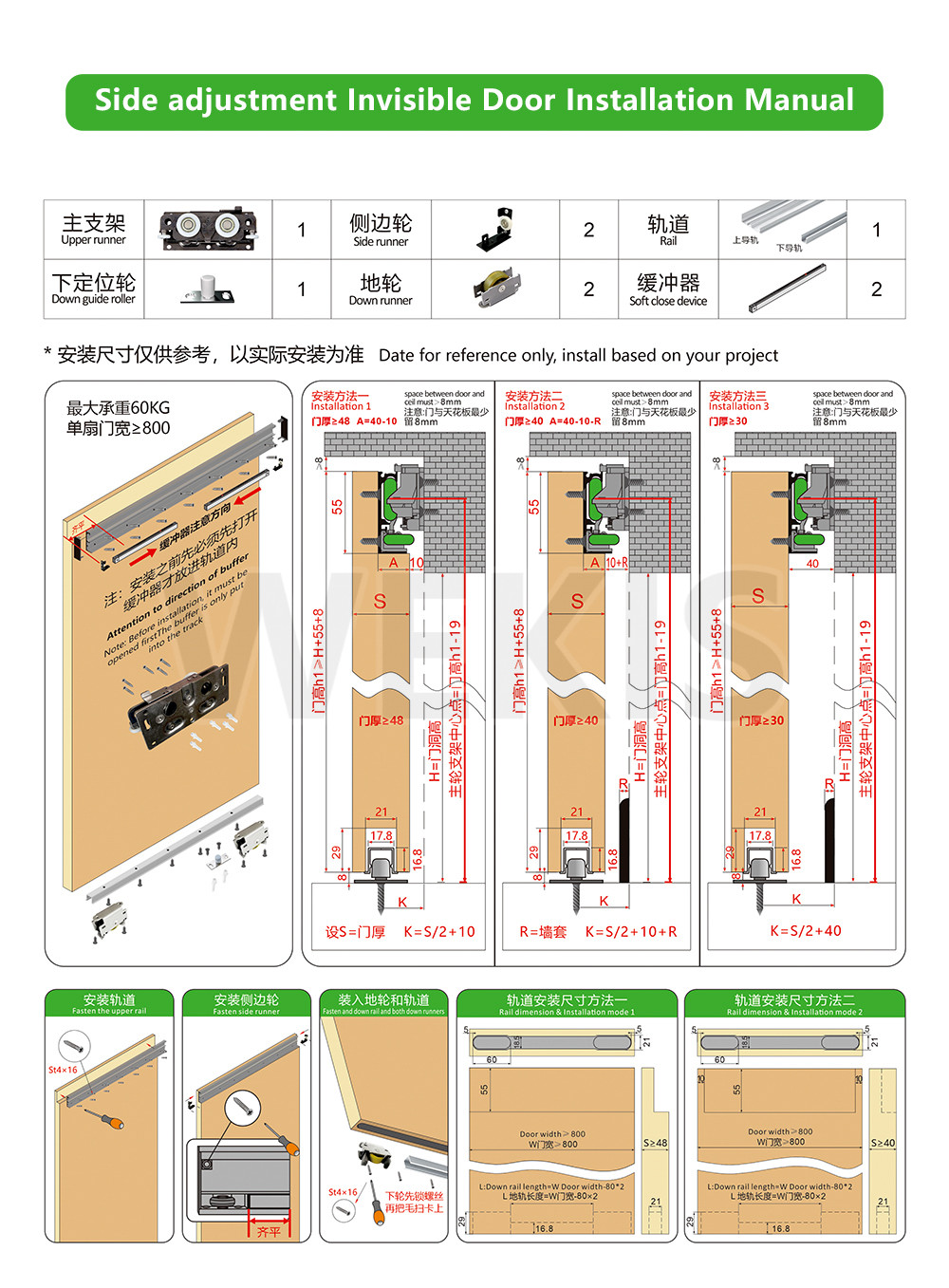Premium Craftsmanship: Crafted for enduring quality, our barn door hardware guarantees durability and consistent performance. The Hidden Magic mechanism is engineered to withstand the test of time, ensuring your doors operate smoothly for years to come.