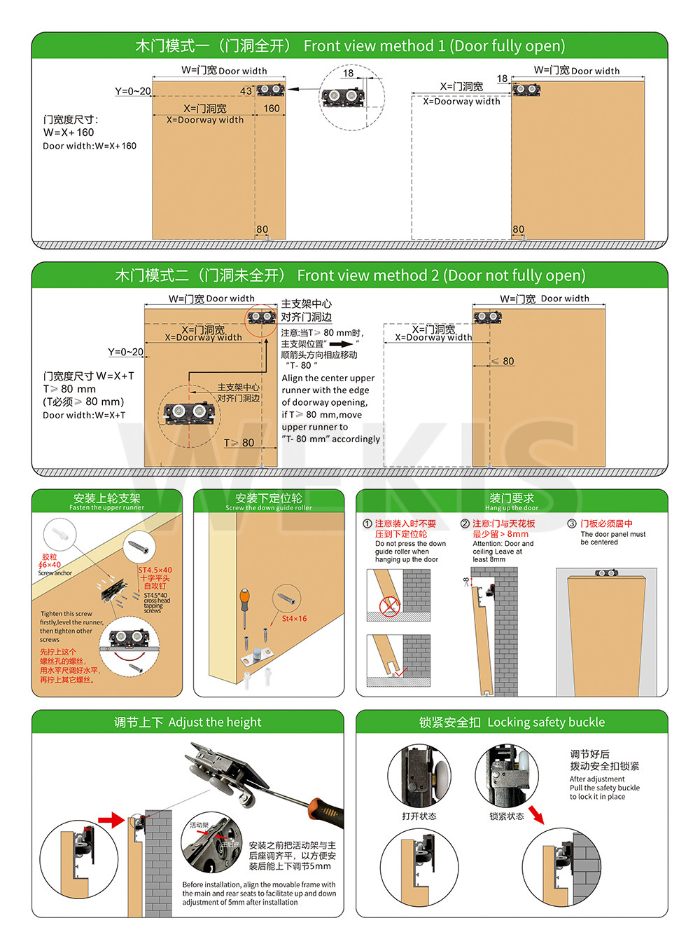 for door thickness 40-50mm, door width 800-1520mm
